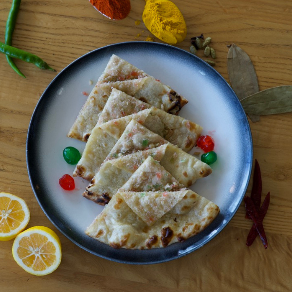 Traditional Indian bread stuffed with dry fruits and coconut and baked in tandoor oven.